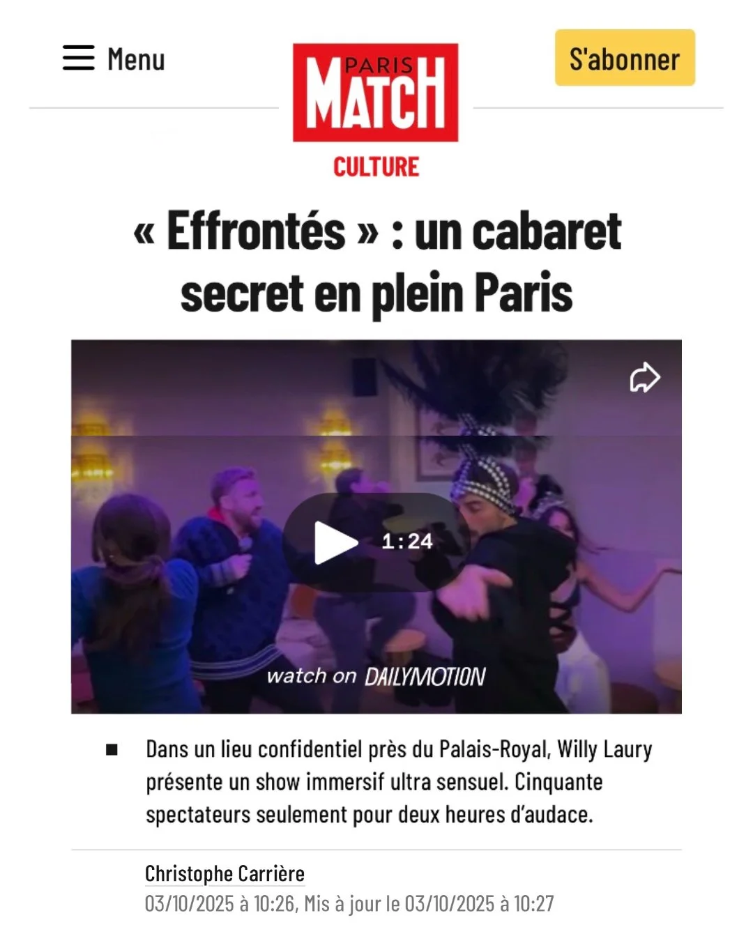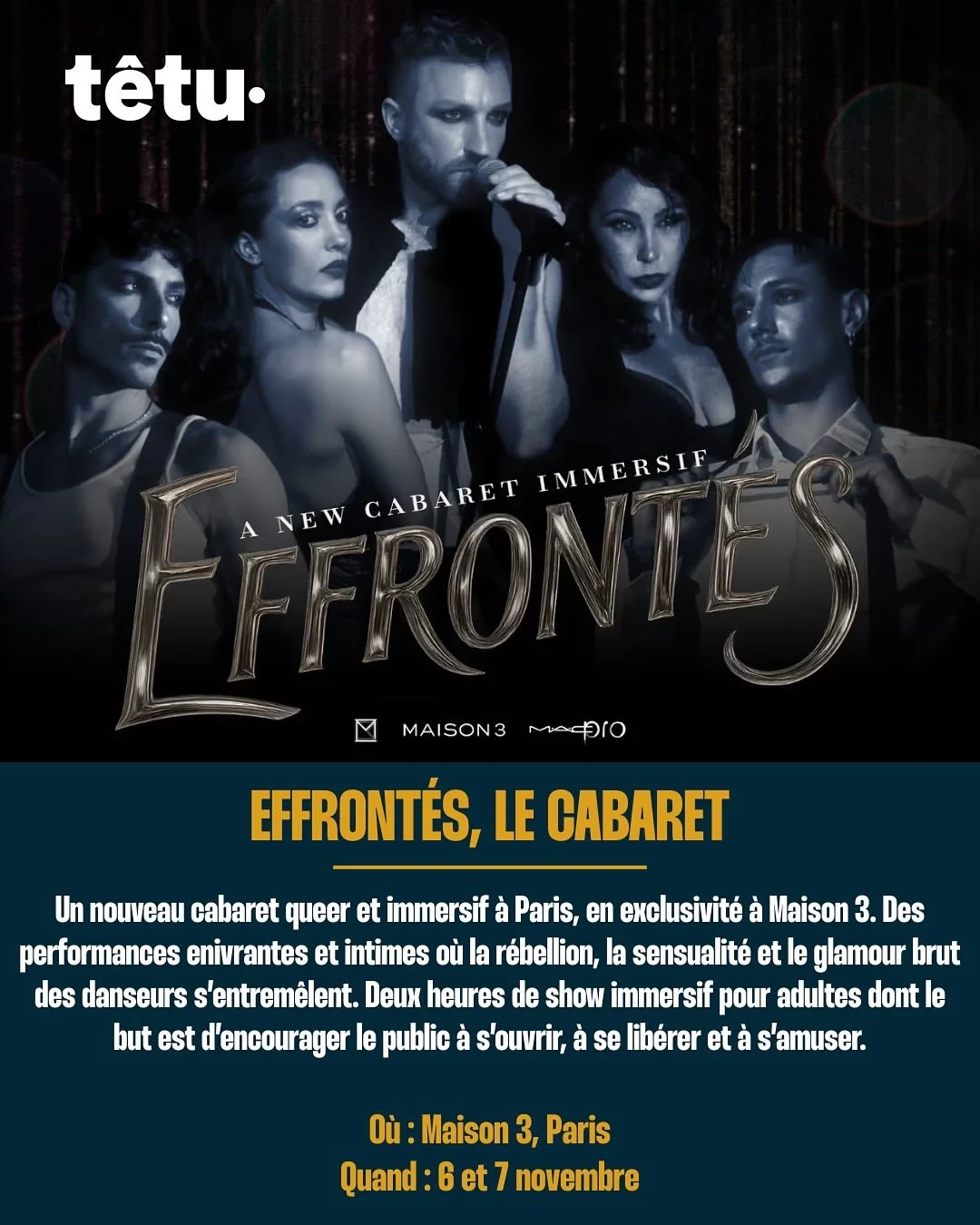 Paris — Maison 3 dévoile EFFRONTÉS, un cabaret enivrant et intime où rébellion et glamour brut s’entrelacent pour créer une expérience inoubliable. Ici, l’audace se savoure, l’imagination s’émancipe, et chaque spectateur franchit le seuil d’un univers dont il ne voudra plus ressortir.